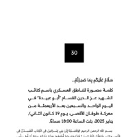 - ar تفريغ كلمات وخطابات الناطق العسكري لكتائب الشهيد عز الدين القسّام "أبو عبيدة" بين الثامن من تشرين أول أكتوبر ٢٠٢٣ والثامن عشر من تموز يوليو ٢٠٢٥.